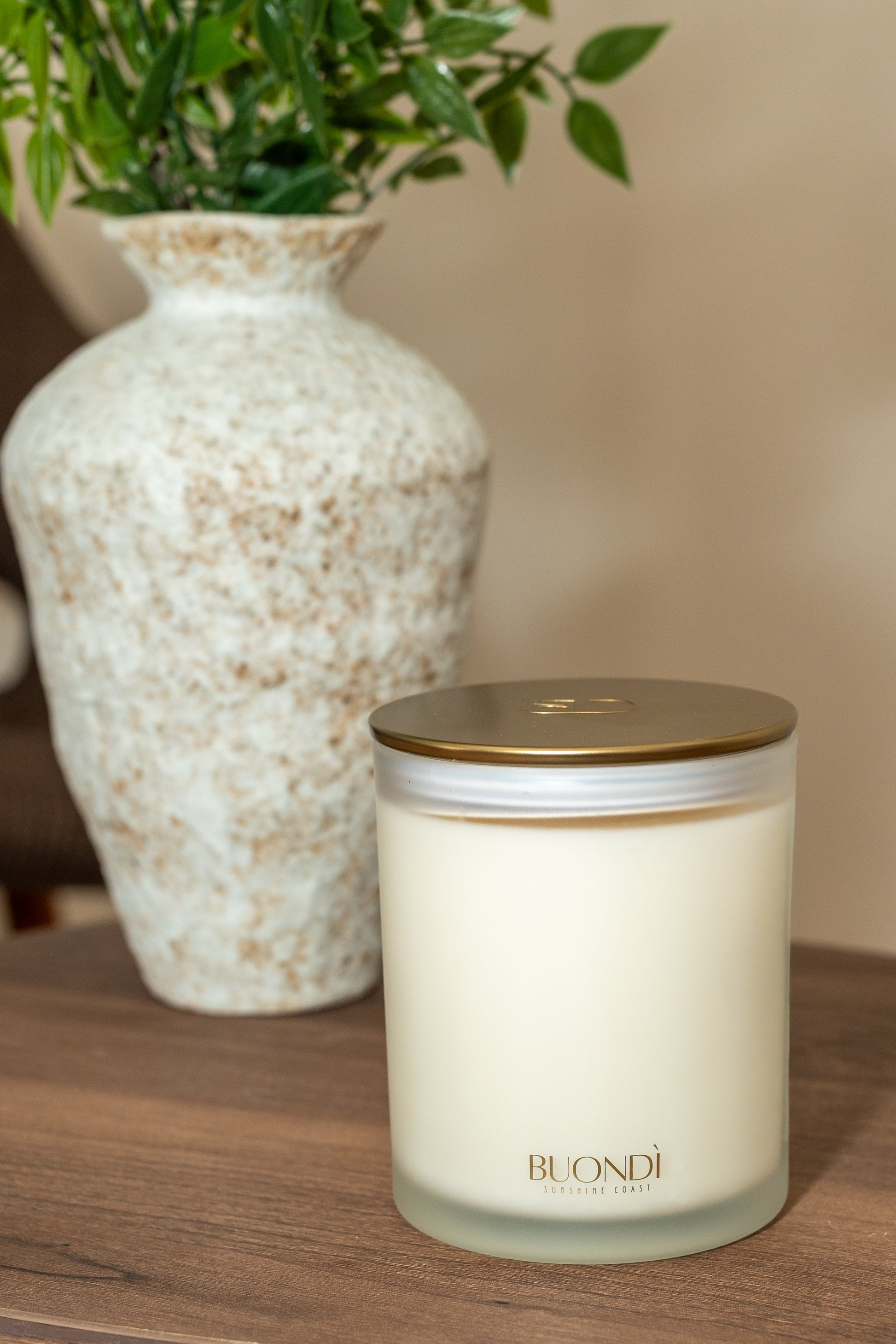 A luxurious blend of soy and coconut wax for a clean, long-lasting burn.
