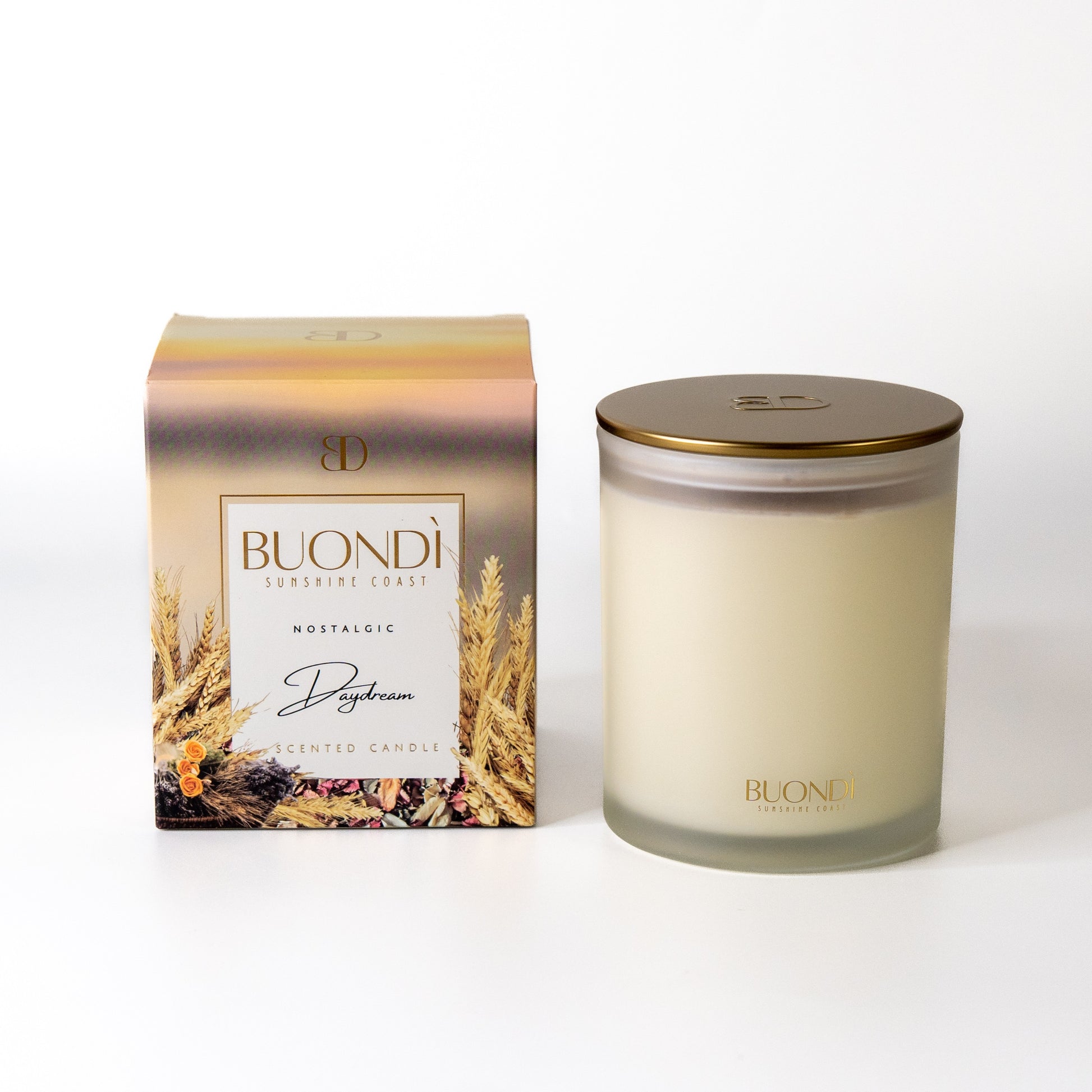 Crafted with a natural soy and coconut wax blend and infused with premium fragrance oils. Designed for a clean, even burn and comforting scent throw, Daydream wraps your space in familiar warmth — where creamy woods, amber, and spice awaken treasured memories.