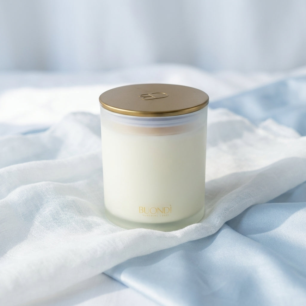 Housed in an elegant glass vessel with a cotton wick, it brings a moment of effortless calm to your home.