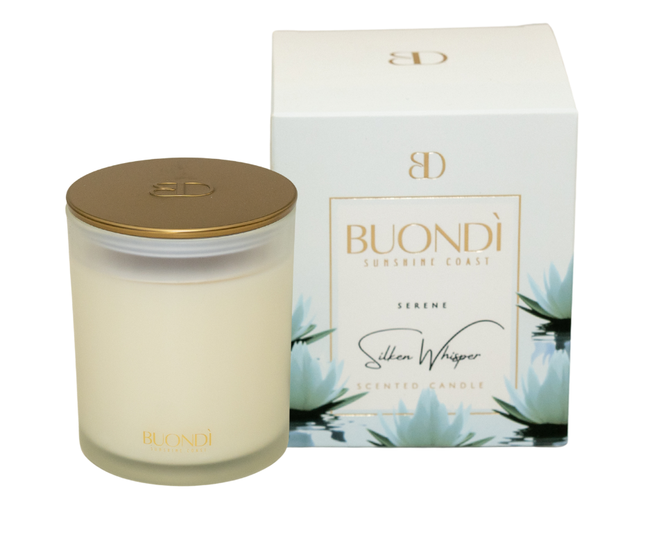 Crafted with a natural soy and coconut wax blend and infused with premium fragrance oils. Designed for a clean, even burn and a softly diffused aroma, Silken Whisper surrounds you with the graceful harmony of vanilla, white florals, and gentle musk.