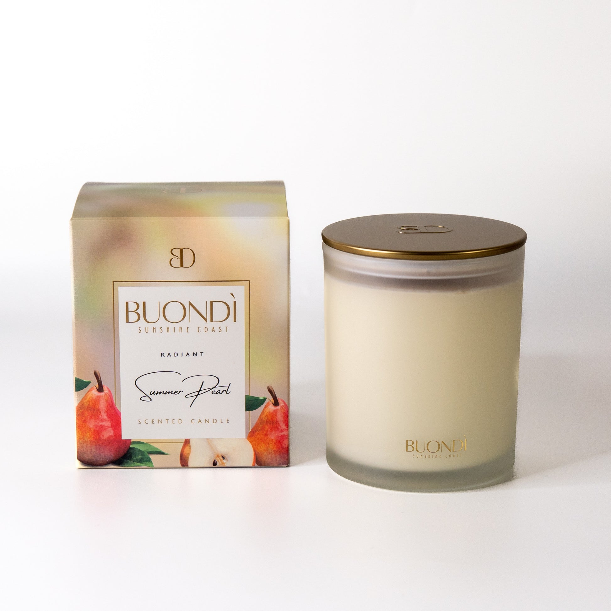 Crafted with a natural soy and coconut wax blend and infused with premium fragrance oils. Designed for a clean, even burn and a bright scent throw, Summer Pearl fills your space with uplifting notes of citrus, sunlit florals, and soft woods.